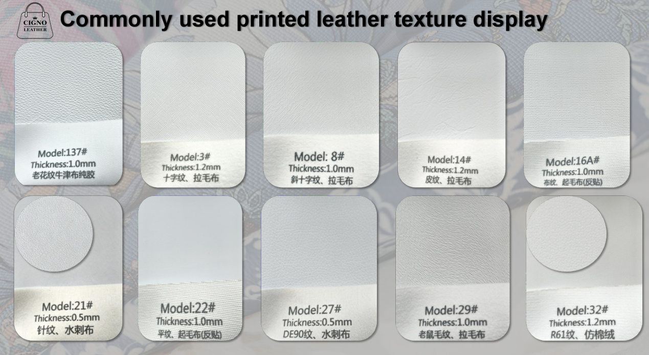 2, Potiskovaná kůže se obvykle používá na výrobu tašek. Nabízíme mnoho různých struktur/vzorů kůže, ze kterých si můžete vybrat. Podívejte se prosím na poslední dva profily.