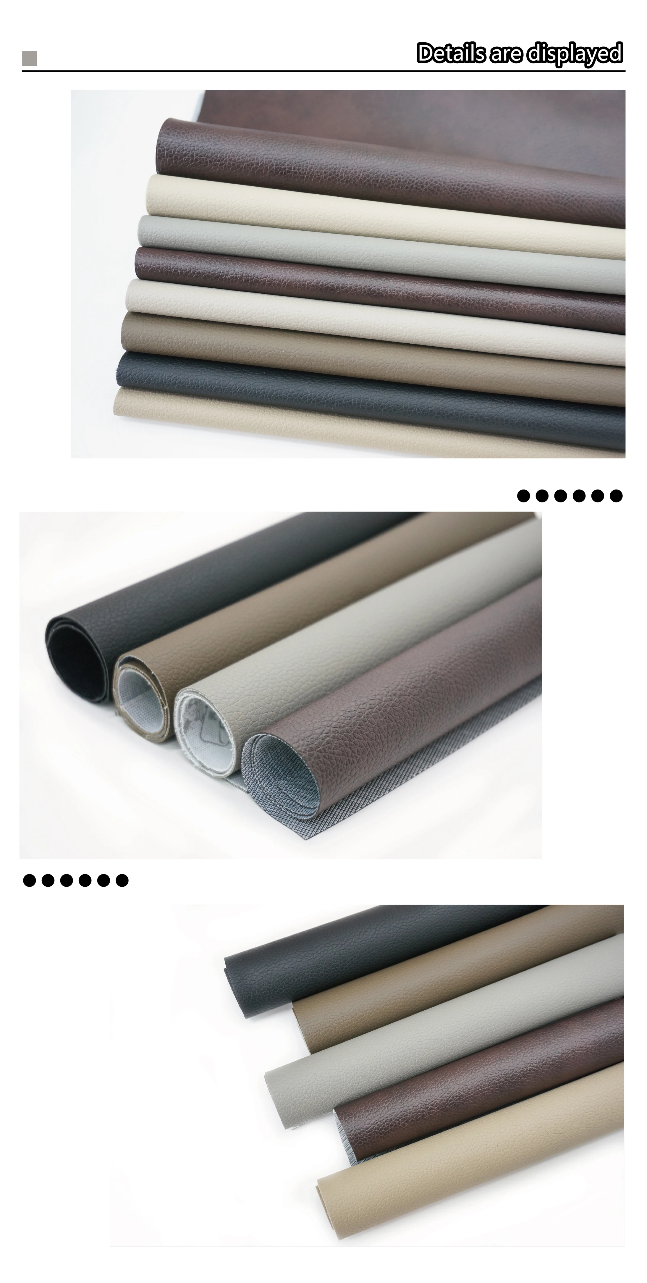 1. Good hand-feeling with soft touch, natural and superfine grains2. Abrasion-resistant and Scratch-resistant3. flame-retardant, US standard or UK standard flame retardant4. Odourless5. Easy to take care of and disinfect,We can provide pattern and color customization services to meet any of your request.Product image reference